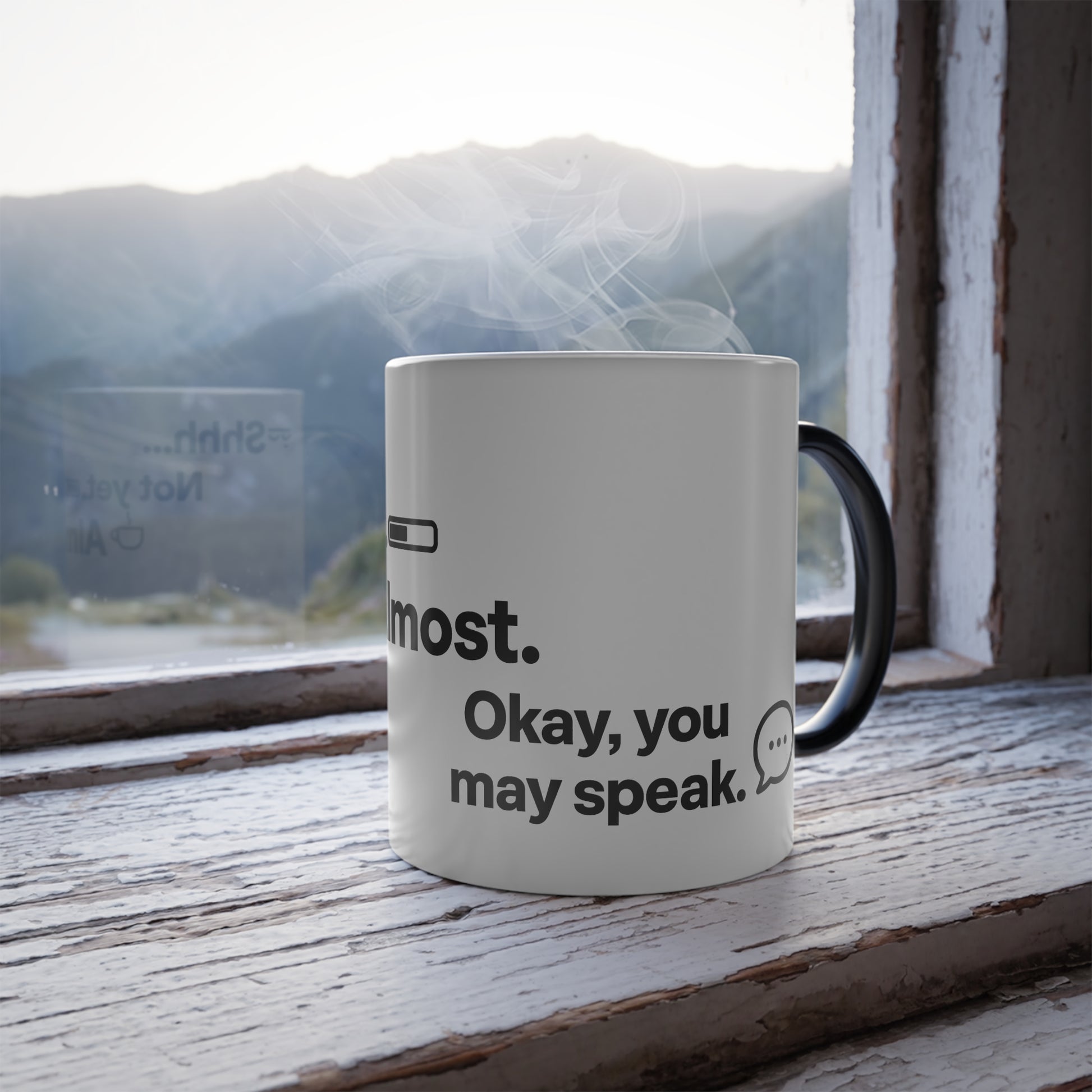 Color-Changing Heat Reveal Mug – “Shhh… Not Yet… Almost… Okay, You May Speak” Funny Morning Coffee Cup (11oz)